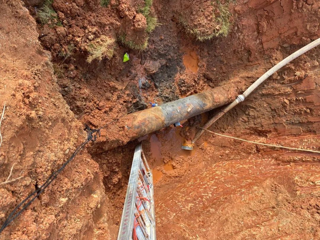 第二次,天气晴,我们带着便携式超声波流量计,地下管道经过几天的挖掘已经出来了,在现场师傅的帮忙下我们根据测算的传感器安装距离,管道上打磨出两个光滑面,这个时刻应该是很激动的,面对这含有泥沙的、8年工龄的管道,现场工程师涂上耦合剂,准确的贴上探头,固定探头,等待约1分钟,主机信号来了,观察5分钟左右,信号稳定,流量示数稳定,回报业主,超声波流量计可以在此正常使用。